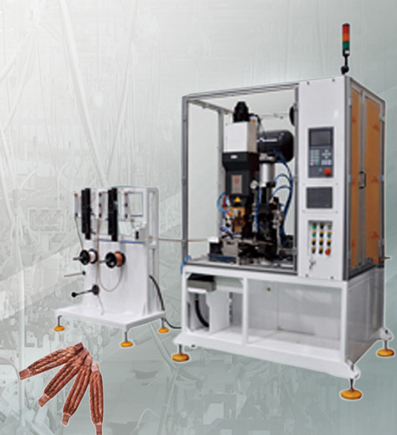 單、多股編織銅線的自動(dòng)焊接成型、剪斷,運(yùn)用在低壓電氣、碳刷行業(yè)等。