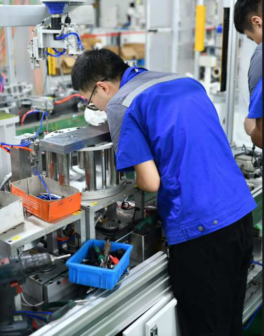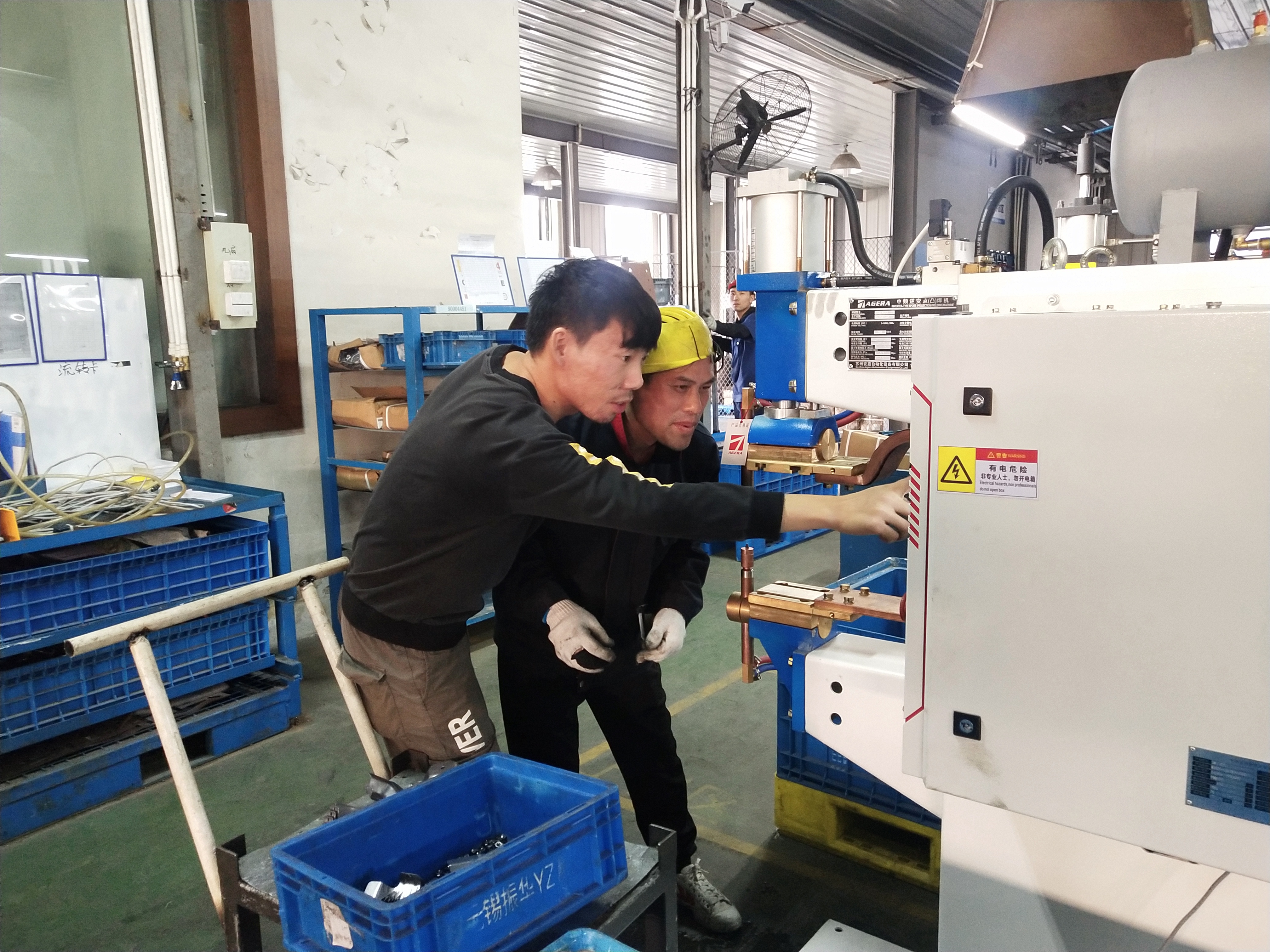 安嘉鉗工正在專心裝配點(diǎn)焊機(jī)