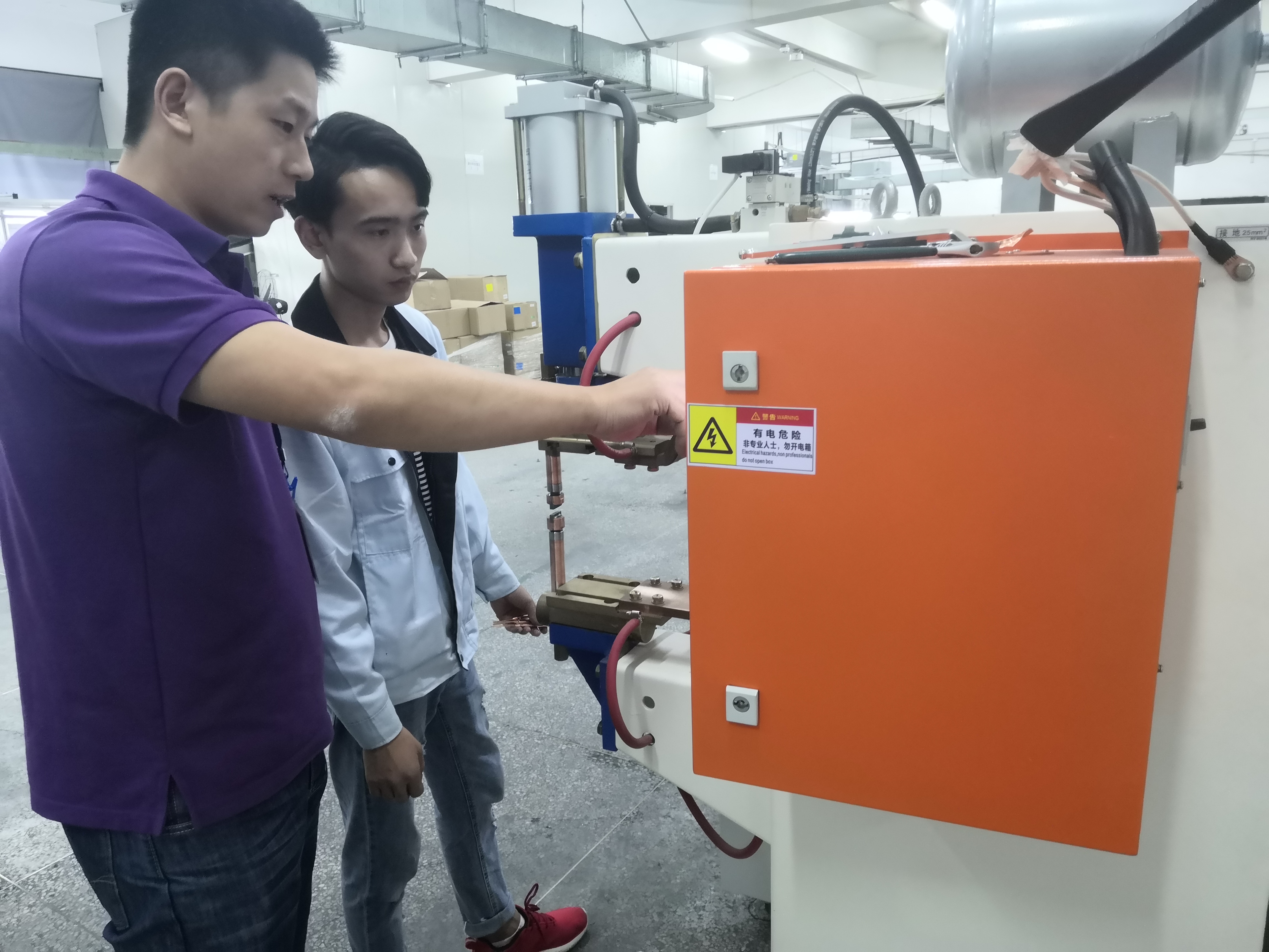 意大利客戶來(lái)廠驗(yàn)收中頻點(diǎn)焊機(jī)