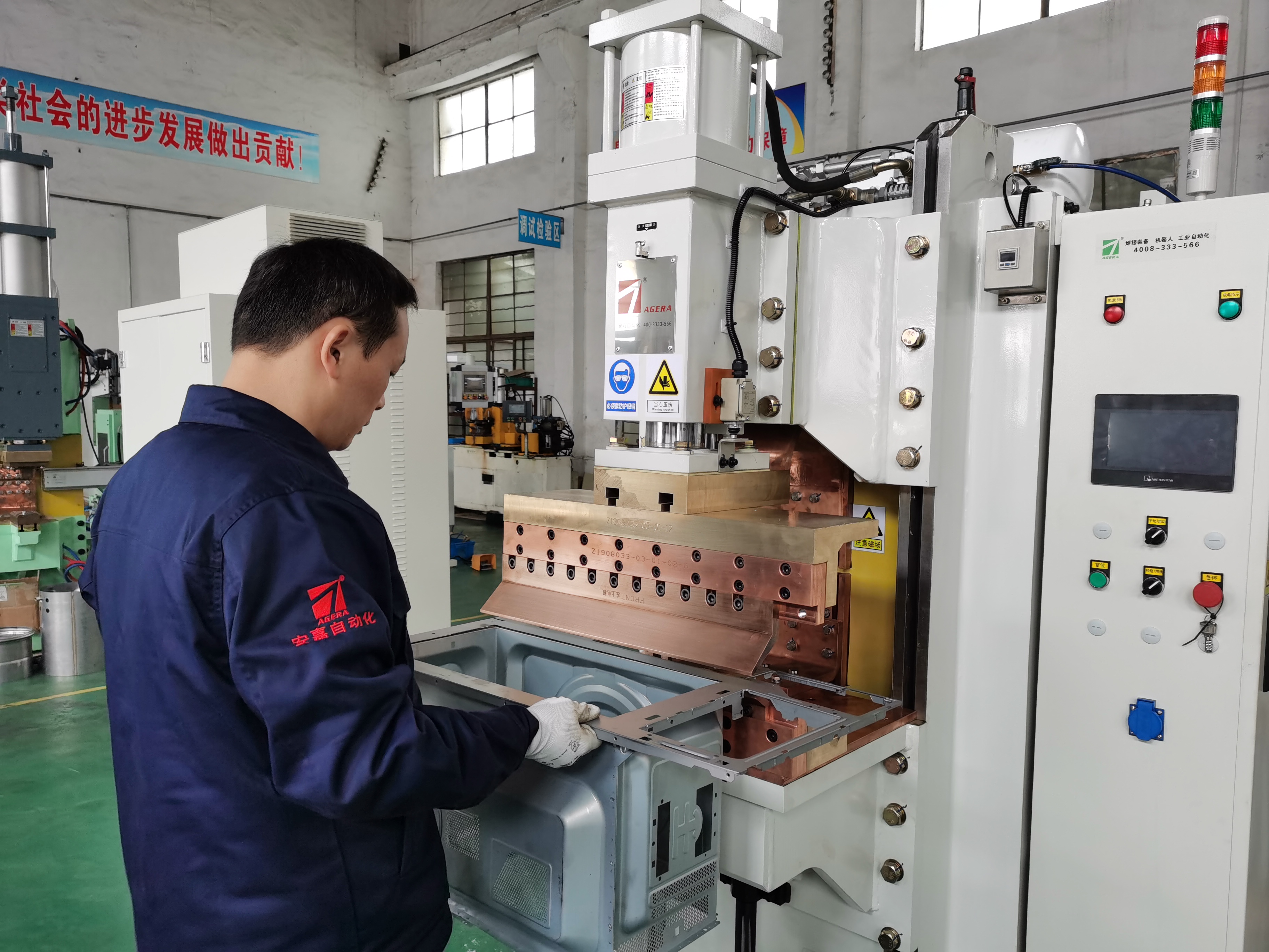 安嘉鉗工正在專心裝配點(diǎn)焊機(jī)